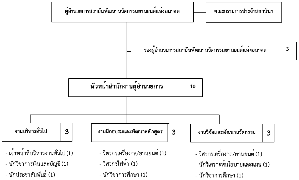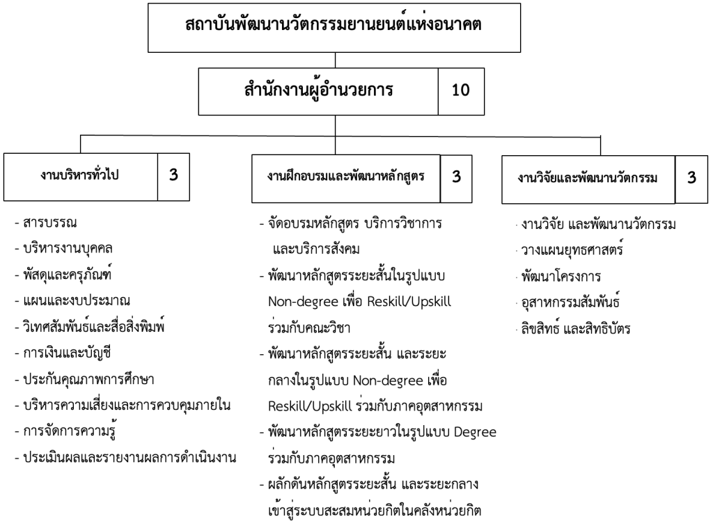 ตำแหน่งและหน้าที่ตามโครงสร้างการบริหารสถาบันพัฒนานวัตกรรมยานยนต์แห่งอนาคต